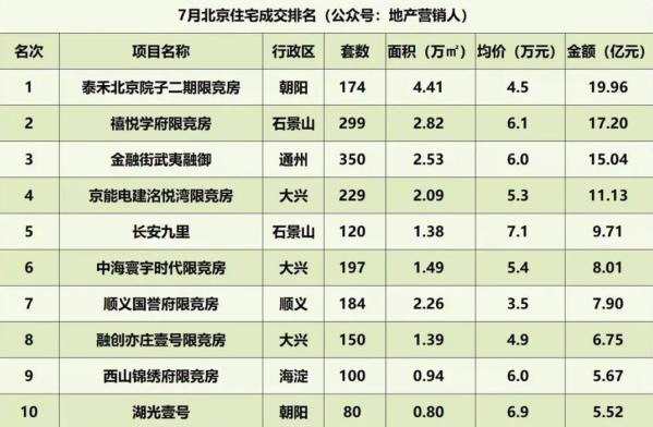 北京住宅成交排名(圖片來源于地產營銷人)