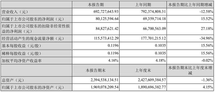 武漢凡谷上半年?duì)I收6.93億元 同比減少12.58%