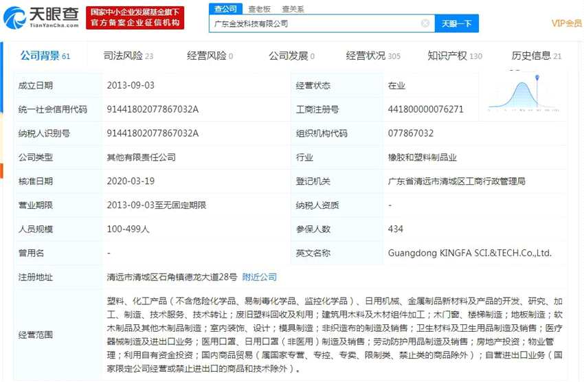 天眼查數(shù)據(jù)顯示,廣東金發(fā)科技有限公司成立于2013年,注冊資本3.55億元,經(jīng)驗范圍包括塑料、化工產(chǎn)品(不含危險化學(xué)品、易制毒化學(xué)品、監(jiān)控化學(xué)品)、日用機械、金屬制品新材料及產(chǎn)品的開發(fā)、研究、加工、制造、技術(shù)服務(wù)、技術(shù)轉(zhuǎn)讓;廢舊塑料回收及利用等。