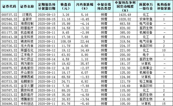 表:21只中報業(yè)績有望翻番股一覽