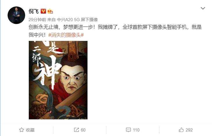 中興首款屏下鏡頭手機(jī)A20 5G 或會(huì)影響前置