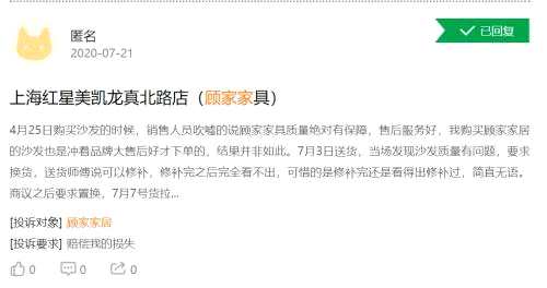 而反應(yīng)至市場上,顧家家居激進(jìn)擴(kuò)張已經(jīng)為其帶來了一定程度的負(fù)面影響。天眼查APP 顯示,顧家家居的法律訴訟達(dá)127起,其中多項涉及侵害外觀設(shè)計專利權(quán)糾紛。而消費者方面,黑貓投訴、天貓、京東等平臺上,顧家家居的質(zhì)量、送貨及服務(wù)等問題屢遭投訴。