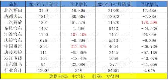 7月 福田穩(wěn)居榜首!江淮、重汽大漲!