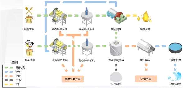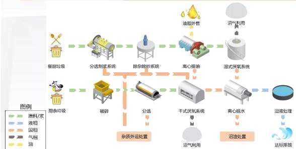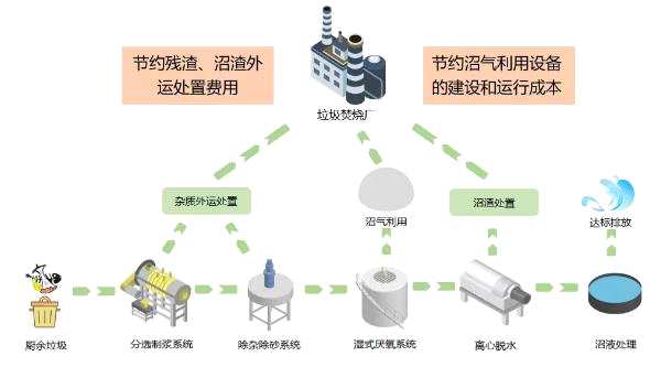 廚余垃圾獨(dú)立處理模式的項(xiàng)目要求資源化利用率高,同時(shí)要求整個(gè)系統(tǒng)可適應(yīng)垃圾分類進(jìn)程物料特征變化。