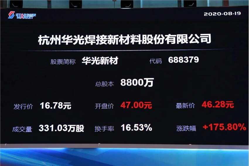 2020年8月19日,杭州華光焊接新材料股份有限公司(證券代碼:688379)在我所舉行上市儀式。