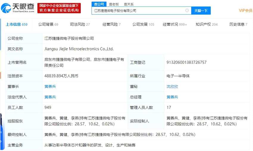 天眼查APP顯示,捷捷微電從事功率半導(dǎo)體芯片和器件的研發(fā)、設(shè)計(jì)、生產(chǎn)和銷(xiāo)售。