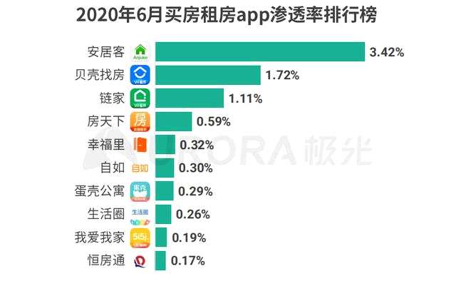 根據極光數據顯示,截至2020年6月,我愛我家app滲透率僅有0.19%,與安居客、貝殼找房、鏈家等app的滲透率相差甚遠。