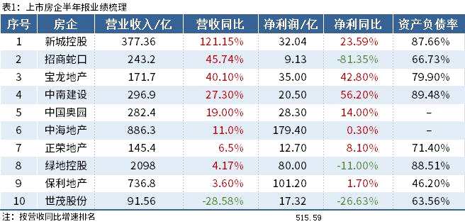 10家上市房企上半年賺逾500億 資產(chǎn)負債率高企
