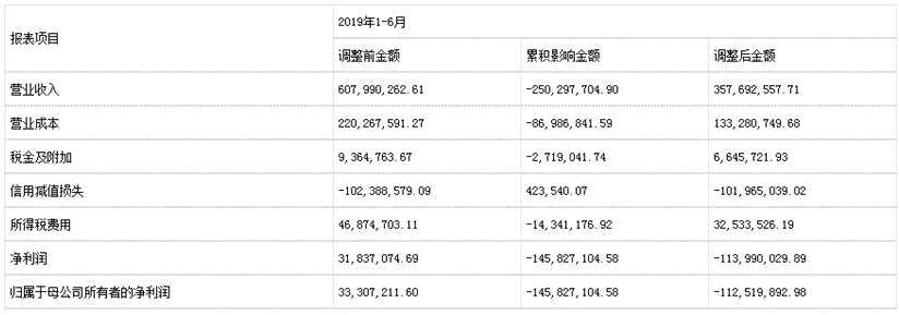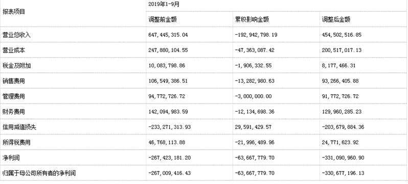 此外,公司對(duì)前三季度合并及母公司財(cái)務(wù)報(bào)表包括合并資產(chǎn)負(fù)債表、母公司資產(chǎn)負(fù)債表、公司合并利潤(rùn)表及母公司利潤(rùn)表數(shù)據(jù)亦做了相應(yīng)調(diào)整,其中,總營(yíng)收調(diào)整前金額6.47億元,調(diào)整后金額4.55億元,累積影響金額-1.93億元;凈利潤(rùn)調(diào)整前金額-2.67億元,調(diào)整后金額-3.31億元,累積影響金額-6366.78萬(wàn)元;歸母凈利潤(rùn)調(diào)整前金額-2.67億元,調(diào)整后金額-3.31億元,累積影響金額-6366.78萬(wàn)元。
