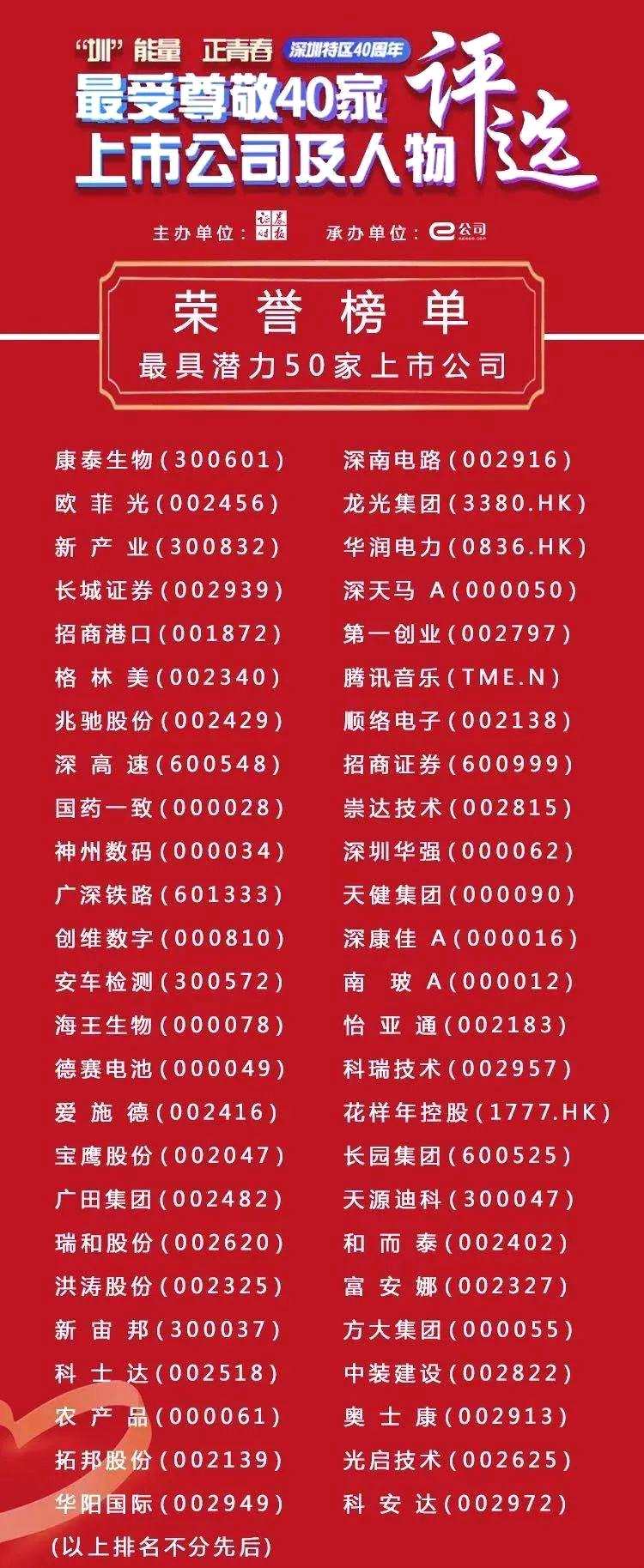 深圳特區(qū)40周年“最具潛力50家上市公司”榮譽(yù)榜單