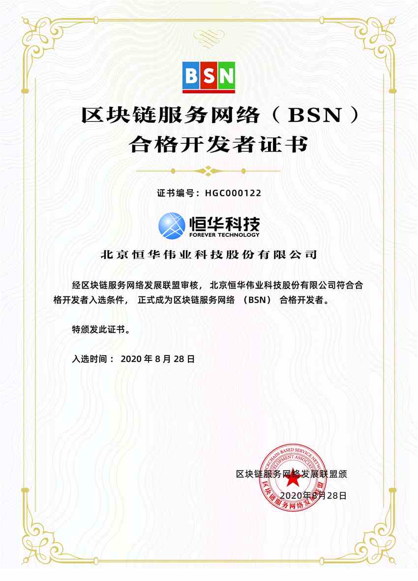 恒華科技獲區(qū)塊鏈服務(wù)網(wǎng)絡(luò)(BSN)合格開(kāi)發(fā)者認(rèn)證