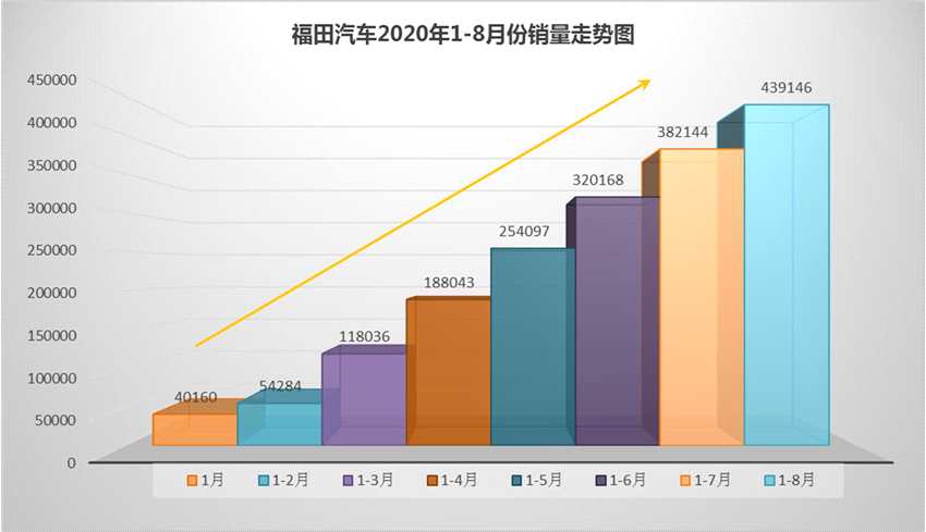 持續(xù)向上!福田汽車8月增幅超5成 年度銷量累計(jì)近44萬