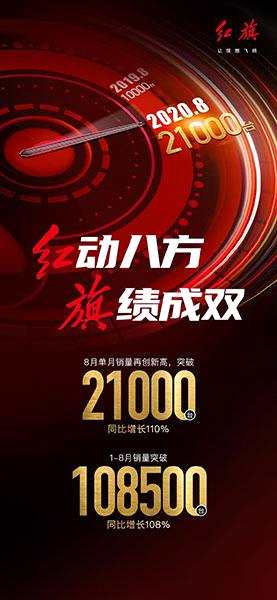 近日,紅旗對外發(fā)布8月銷售數(shù)據(jù)顯示:單月總銷量突破2.1萬輛,同比增110%,其中HS5單品月銷過萬。1-8月,紅旗累計銷量突破108500輛,同比增長108%,繼續(xù)書寫“新紅旗速度”。