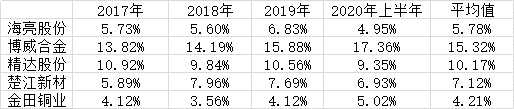 不僅如此,對(duì)金田銅業(yè)收入貢獻(xiàn)最大的銅線(排)業(yè)務(wù),2017-2019年的毛利率分別為2.27%、1.79%和1.99%,均值為2.02%,而同期同行業(yè)【電工合金(300697)、股吧】(300697)銅母線毛利率為6.56%。