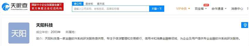 天眼查APP顯示,天陽科技是一家金融軟件系統(tǒng)研發(fā)服務(wù)提供商,專注于信貸管理和交易銀行、信用卡和消費金融等領(lǐng)域,為企業(yè)及用戶提供專業(yè)金融軟件系統(tǒng)研發(fā)服務(wù)。