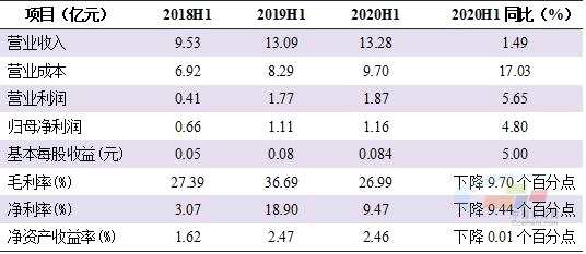 2020年上半年,青松建化(600425)共實現(xiàn)營業(yè)收入13.28億元,同比增長1.49%。歸屬于上市公司股東的凈利潤為1.16億元,同比增長4.80%。上半年加權(quán)平均凈資產(chǎn)收益率為2.46%,同比下降0.01個百分點,與上年同期基本持平。