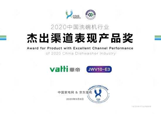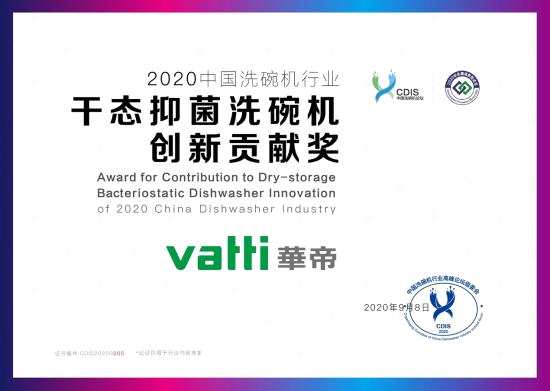 2020年9月8日,2020中國洗碗機行業(yè)高峰論壇在北京舉行。論壇上,華帝洗碗機干態(tài)抑菌技術獲得“2020中國洗碗機行業(yè)干態(tài)抑菌洗碗機創(chuàng)新貢獻獎”,干態(tài)抑菌洗碗機A6獲得“2020中國洗碗機行業(yè)優(yōu)選產品”,干態(tài)抑菌洗碗機E3及干態(tài)抑菌洗碗機H8獲得“2020中國洗碗機行業(yè)杰出渠道表現(xiàn)產品獎”。