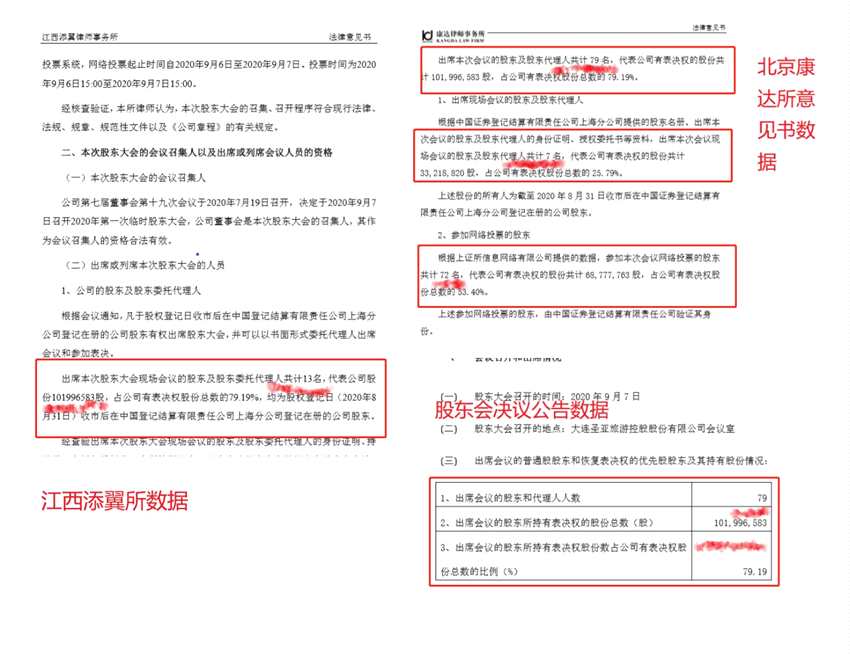 對(duì)于此次股東會(huì),除了現(xiàn)場(chǎng)的小爭執(zhí),北京康達(dá)與江西添翼兩家律師事務(wù)所最終給出的法律意見也不盡相同,再度打架。甚至一些基礎(chǔ)數(shù)據(jù)也大相徑庭,江西添翼疑似“忙中出錯(cuò)”,相關(guān)數(shù)據(jù)存有較大疑問。