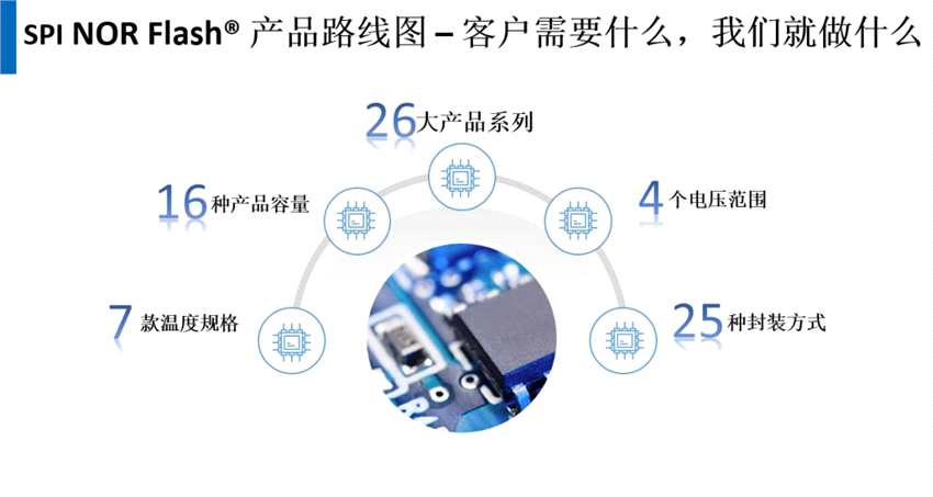 產(chǎn)品現(xiàn)狀方面,根據(jù)兆易創(chuàng)新Flash事業(yè)部市場經(jīng)理薛霆的描述,NOR Flash方向共有26大產(chǎn)品系列,16種產(chǎn)品容量,4個電壓范圍,25種封裝方式,7款溫度規(guī)劃的產(chǎn)品。容量覆蓋512KB到2G,電壓范圍覆蓋1.8V、2.5V以及3V,工藝制程正從65nm向55nm演進(65nm主要針對車規(guī)級產(chǎn)品,55nm主要針對車規(guī)級以外的產(chǎn)品)。NAND Flash方向主要是和合作伙伴一起推出一些產(chǎn)品,覆蓋通訊、基站、智能電視、打印機等領域。容量覆蓋1Gb到8Gb,電壓覆蓋3V和1.8V,工藝制程從38nm向24nm演進。