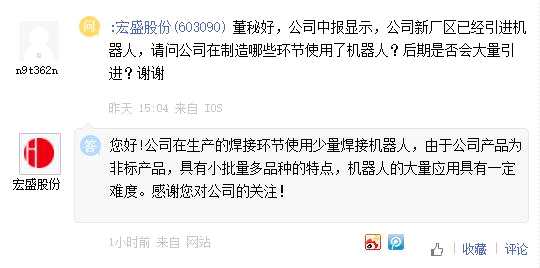 宏盛股份:由于公司產(chǎn)品為非標(biāo)產(chǎn)品 機(jī)器人的大量應(yīng)用具有一定難度