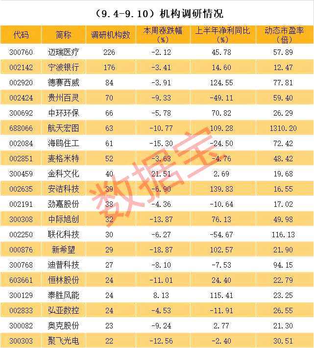 近一周機構(gòu)調(diào)研個股數(shù)量有140多只,邁瑞醫(yī)療(行情300760,診股)成為調(diào)研機構(gòu)數(shù)量最多的股票。