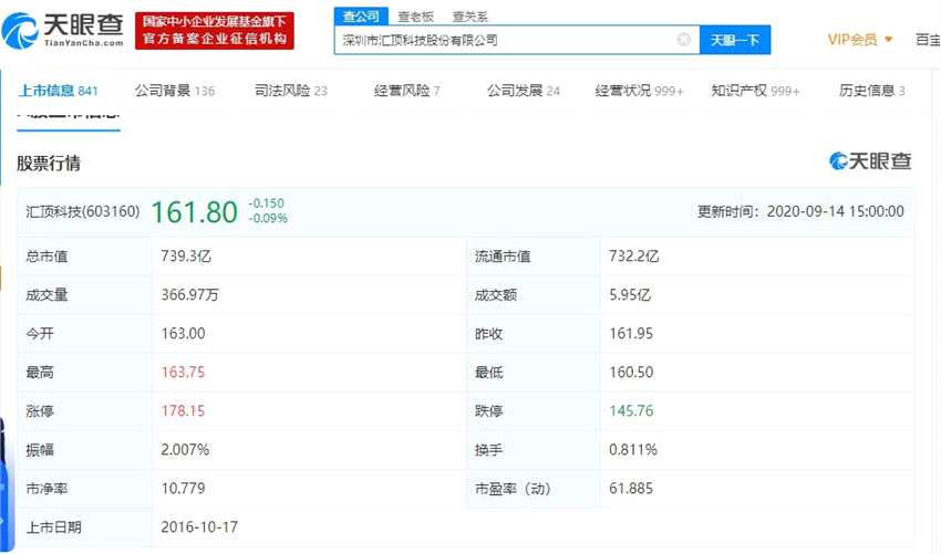 天眼查APP顯示,匯頂科技自年內2月創(chuàng)下新高后,股價已經(jīng)腰斬?,F(xiàn)總市值為739億元。