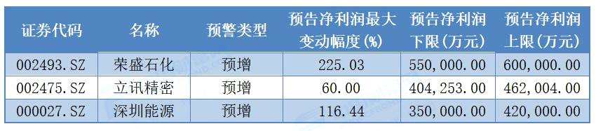 在已預(yù)告三季報業(yè)績的525家上市公司中,共有224家預(yù)計盈利,17家最高盈利在10億元以上。其中,【榮盛石化(002493)、股吧】(002493)、立訊精密(002475)、深圳能源(000027)穩(wěn)坐三甲,預(yù)告凈利潤上限分別達60億元、46.2億元、42億元。
