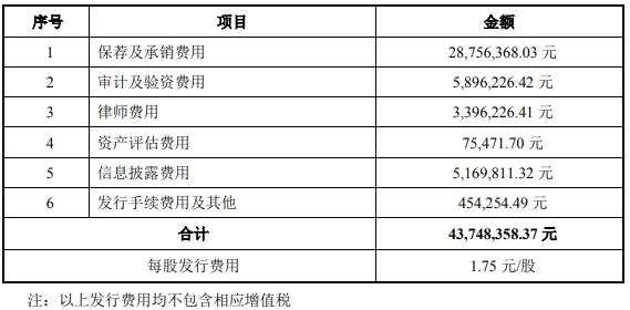 翔豐華本次上市發(fā)行費用為4374.84萬元,其中保薦機構(gòu)申萬宏源證券承銷保薦有限責(zé)任公司獲得保薦及承銷費用2875.64萬元,眾華會計師事務(wù)所(特殊普通合伙)獲得審計、驗資及評估費用589.62萬元,北京市中倫律師事務(wù)所獲得律師費用339.62萬元。