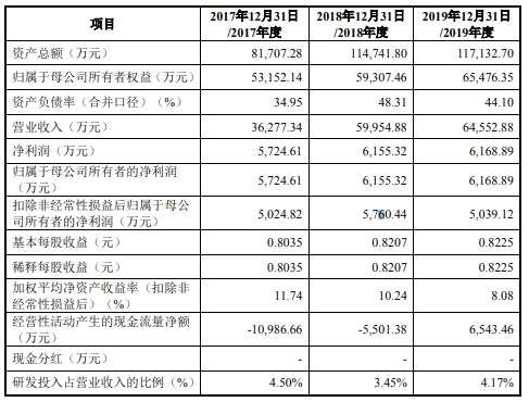 2014至2019年,翔豐華營業(yè)收入分別為7676.06萬元、13,013.42萬元、23,665.11萬、36,277.34萬元、59,954.88萬元和64,552.88萬元,凈利潤分別為1115.35萬元、732.42萬元、4098.98萬元、6168.89萬元、6155.32萬元和5724.61萬元,其中最近三年凈利潤呈下降趨勢。