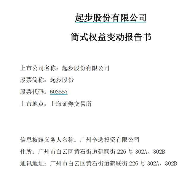 9月16日晚間,起步股份(603557)(603557)公布一則權(quán)益變動(dòng)公告,公司控股股東香港起步擬以9.162元/股價(jià)格,分別向辛選投資、張曉雙各轉(zhuǎn)讓公司5%的股份,總轉(zhuǎn)讓金額為4.32億元。轉(zhuǎn)讓完成后,香港起步扔持有公司41.20%的股份,公司控股股東及實(shí)際控人未發(fā)生變化。
