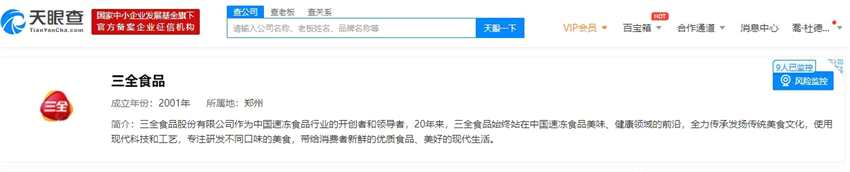 天眼查APP顯示,20年來,三全食品始終深耕中國速凍食品美味。