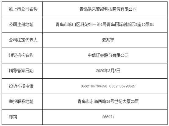 在完成多輪融資后,易來智能于今年8月3日在青島證監(jiān)局進(jìn)行輔導(dǎo)備案登記,輔導(dǎo)機(jī)構(gòu)為中信證券。