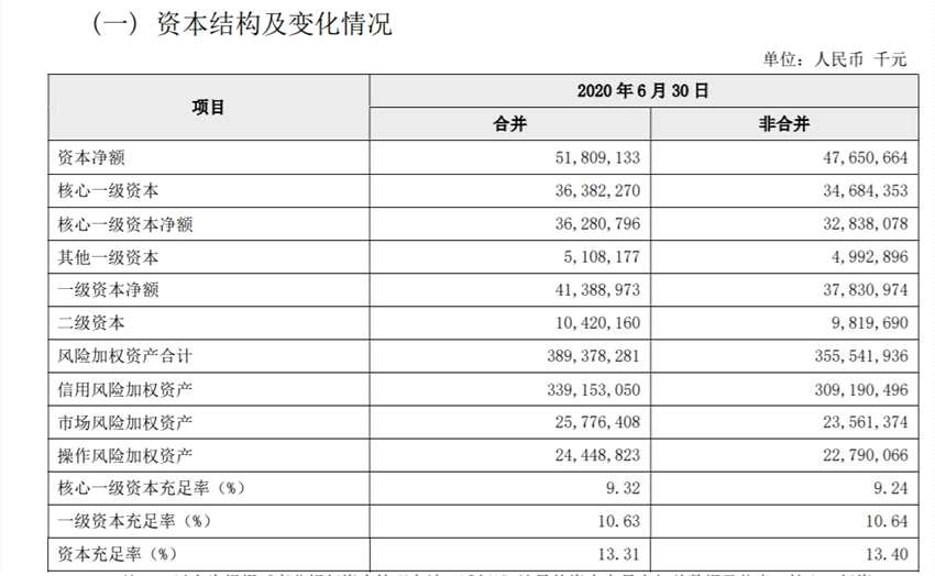 通過與該行2019年報(bào)對(duì)比,發(fā)現(xiàn)其2019年年末的風(fēng)險(xiǎn)加權(quán)資產(chǎn)總額為3701.14億元,而2020上半年該項(xiàng)風(fēng)險(xiǎn)加權(quán)資產(chǎn)總額已經(jīng)增加到3893.78億元,增加額為192.64億元,經(jīng)計(jì)算增幅達(dá)到5.20%。