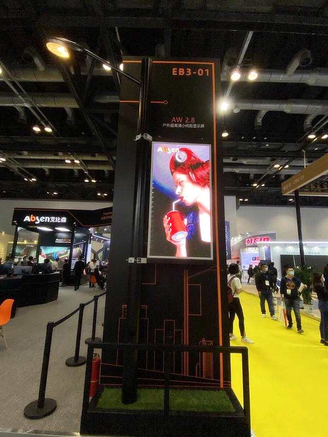 此次展會現(xiàn)場,艾比森也展出了5G智慧燈桿解決方案產(chǎn)品AW2.8。AW系列以“高清、智能、街景廣告”為設(shè)計理念,擁有5000nits的亮度和3840hz的刷新率和超高對比度,以及高達(dá)123904點(diǎn)/m的像素密度,近距離觀看效果細(xì)膩震撼,適用于2~3米近距離街景廣告場合,這正是5G智慧燈桿所需要的智慧顯示終端。