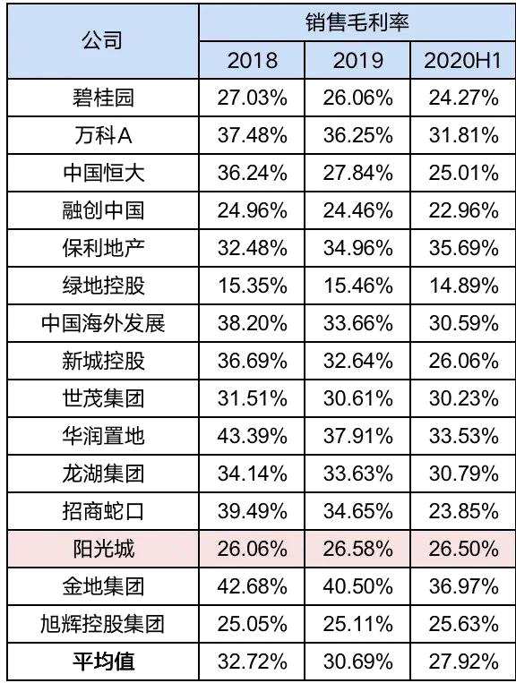我們以陽光城2020年上半年的毛利率進(jìn)行剖析。