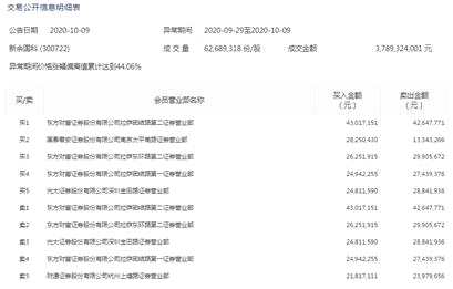 10月9日晚間,深交所發(fā)布的信息顯示,在9月29日至10月9日期間,新余國科漲幅偏離值累計達(dá)到44.06%,成交金額達(dá)37.89億元。其中,游資現(xiàn)身龍虎榜。東方財富(300059)證券股份有限公司拉薩團(tuán)結(jié)路第二證券營業(yè)部買入4301.72萬元,賣出4264.78萬元;東方財富證券股份有限公司拉薩東環(huán)路第二證券營業(yè)部買入2625.19萬元,賣出2990.57萬元。