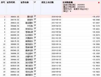 截至9月30日,在跌幅最大的前十名中大部分為創(chuàng)業(yè)板個股,其中【暴風(fēng)退(300431)、股吧】(300431)成了“熊”頭,單月跌幅超過75%。此外,從前十大熊股來看,大多為創(chuàng)業(yè)板公司(7家),及前期漲幅很大的公司。