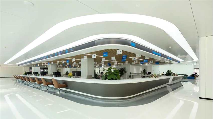 在許多好萊塢大片中,往往多使用黑白色,黑色傳達強大和神秘感,白色顯得精密而專業(yè)也更有未來感,研發(fā)大樓內部的設計圍繞吉利核心價值觀“快樂人生、吉利相伴”的概念,金螳螂團隊以白色為主題色,地面大理石、墻面瓷磚、墻面鋼板、頂面蜂窩鋁板等各種材質都選用白色,營造出明亮、干凈、雅潔的感覺,而不同材料的肌理展示出不同的效果,即使全白也不會顯得單調。
