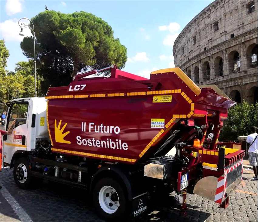 盈峰環(huán)境壓縮式垃圾車在羅馬古城斗獸場