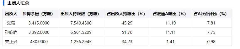 截至公告日,孫屹崢、張菀、孫晶晶、孫好好共持有公司股份數(shù)量為166174273股,占公司總股本比例為37.99%。累計(jì)質(zhì)押6807萬(wàn)股股份,占其所持有股份比例為40.96%,占公司總股本比例為15.56%。