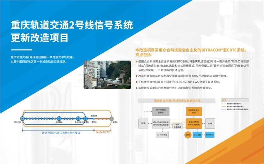 重慶軌道交通2號線信號系統(tǒng)更新改造項(xiàng)目:重慶軌道交通2號線是我國第一條跨座式單軌線路,也是中國西部地區(qū)第一條城市軌道交通線路。