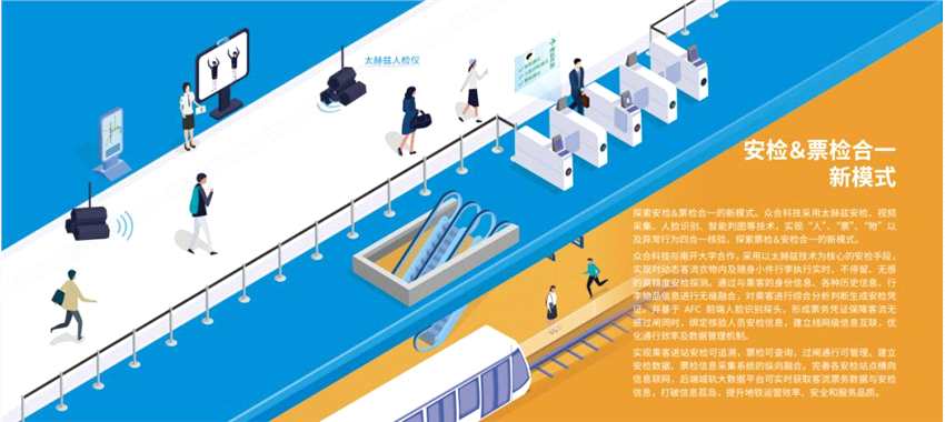 安檢&票檢合一新模式:眾合科技采用太赫茲安檢、視頻采集、人臉識(shí)別、智能判圖等技術(shù),實(shí)現(xiàn)“人”、“票”、“物”以及異常行為四合一核驗(yàn),探索票驗(yàn)&安檢合一的新模式。