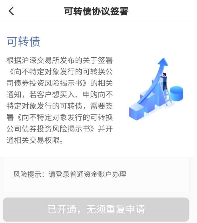 招商證券APP可轉債交易權限開通提醒界面
