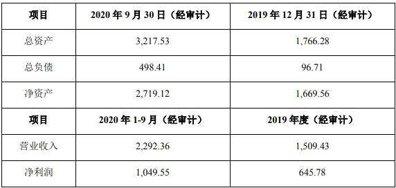 公開資料顯示,統(tǒng)博生物主營業(yè)務(wù)包括生物醫(yī)藥產(chǎn)品及醫(yī)療器械的研發(fā)。公司2019年實現(xiàn)營業(yè)收入為1509.43萬元,凈利潤為645.78萬元;2020年前三季度,公司實現(xiàn)營業(yè)收入為2292.36萬元,實現(xiàn)凈利潤1049.55萬元。