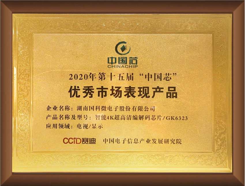 國科微智能4K芯片榮獲“中國芯”優(yōu)秀市場表現(xiàn)產(chǎn)品獎