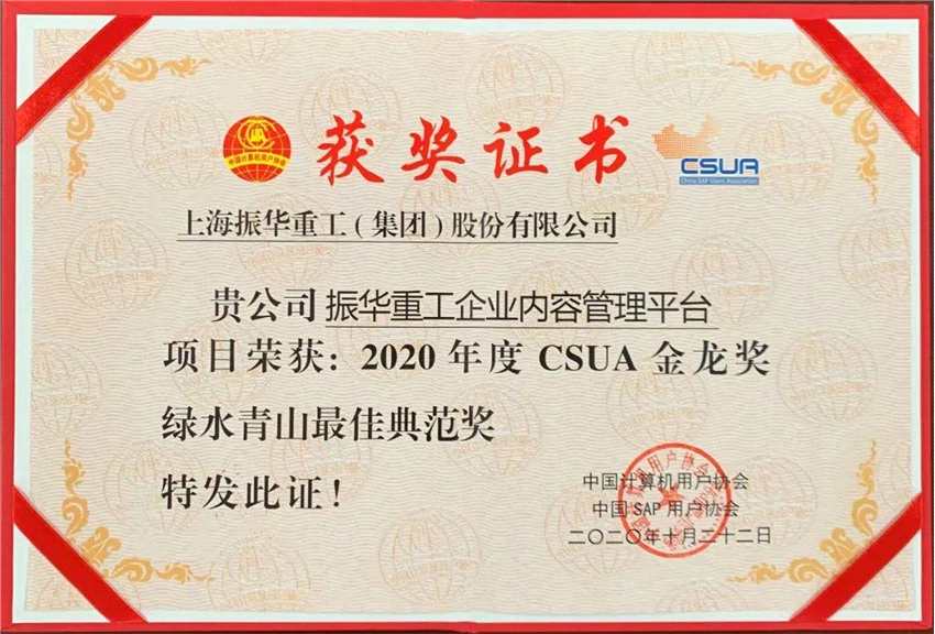 近日,由中國SAP用戶協(xié)會主辦的CSUA八周年慶典暨2020年度會員大會在上海召開,振華重工(600320)應邀參會并領取CSUA金龍獎。