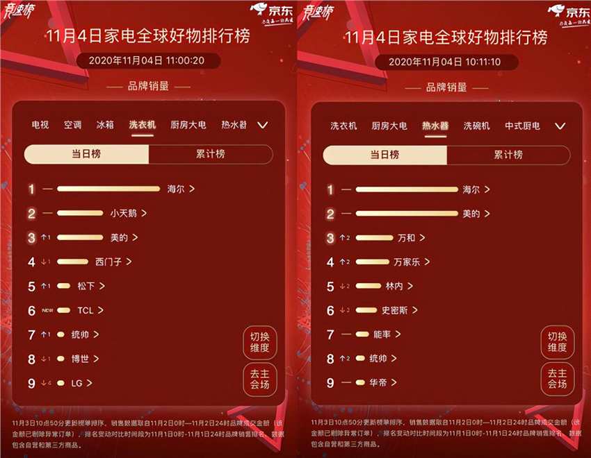 雙11大戰(zhàn)第一波落定!京東競速榜:海爾全品類銷量居首位