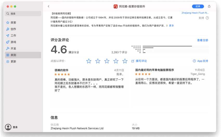 Mac App Store 同花順應(yīng)用評論區(qū)