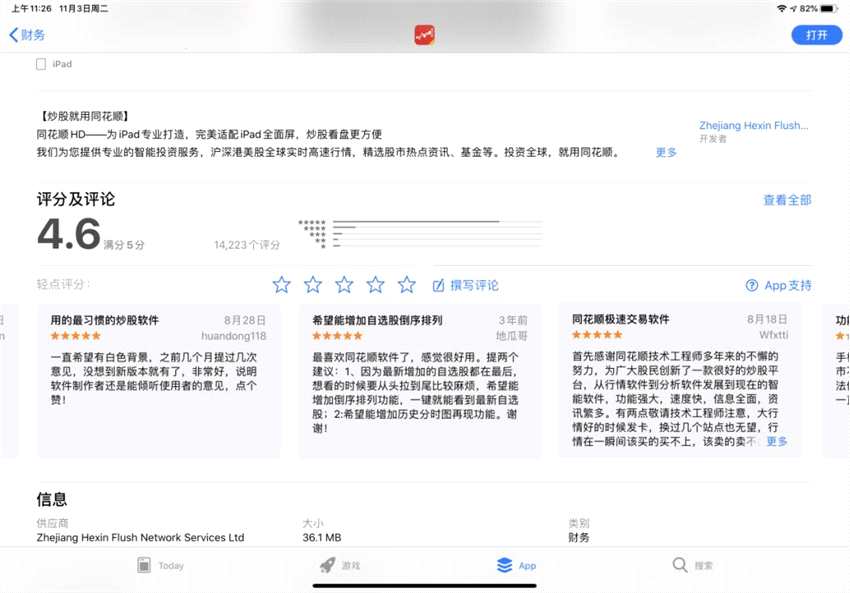 iPad App Store 同花順HD應(yīng)用評論區(qū)