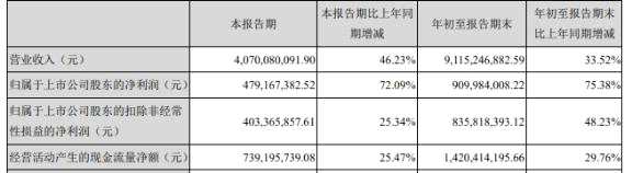 10月27日,新寶股份發(fā)布三季報(bào)顯示,2020年1-9月,公司實(shí)現(xiàn)營收91.15億元,同比增長33.52%;歸母凈利潤9.10億元,同比增長75.38%;扣非凈利潤8.36億元,同比增長48.23%;經(jīng)營活動產(chǎn)生的現(xiàn)金流量凈額14.20億元,同比增長29.76%。